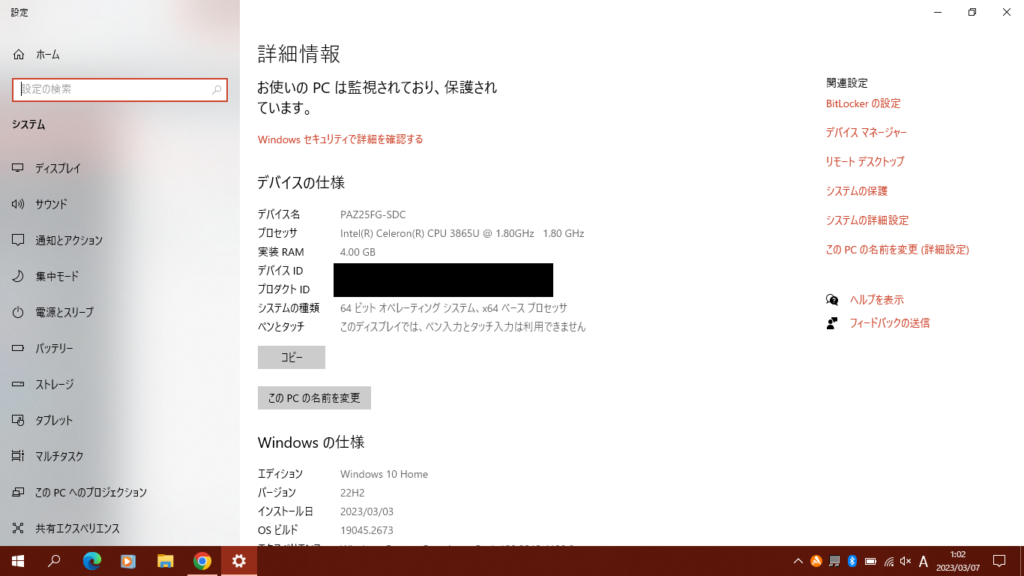 なお第7世代CoreシリーズのCeleron3865Uなので当然のようにWindows11は入りません、しかも指紋センサー搭載という謎モデル。おそらく第8世代CoreシリーズのAZシリーズから指紋センサーの配置がタッチパッド内に変わっているのでパームレストとCPUの在庫処分でしょうか…?なかなか面白いモデルです。