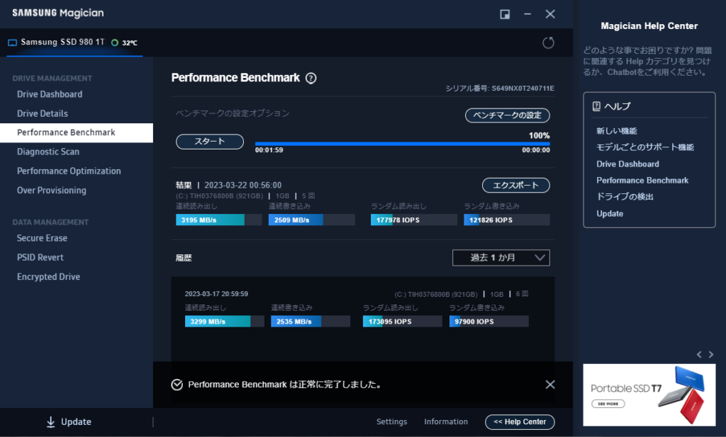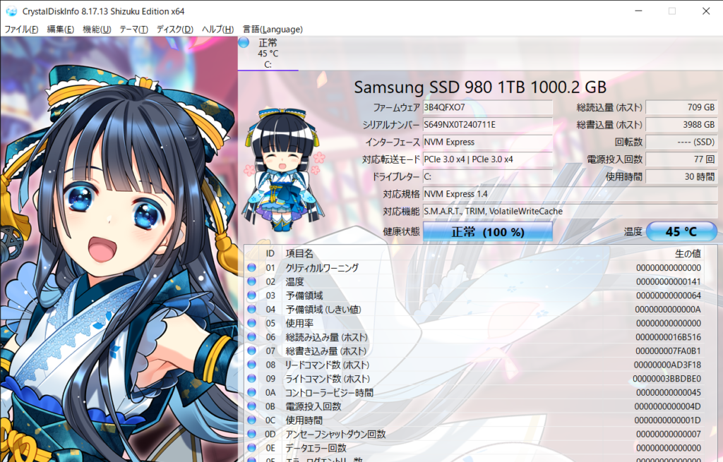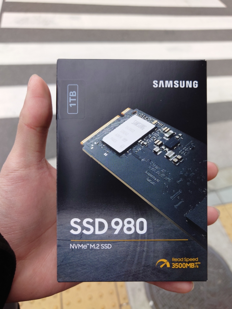 サムスンのSSD 980 1TBになります。まあ書き込み量とかは展示品なので仕方ないですね。