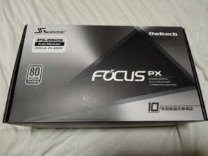 そして安定動作で一番大事だといわれている部品、PC電源。これは最初はSeasonicの80 PLUS GOLD認証のGX-850Sに使用と思っていたのですが同じような値段で80 PLUS Platinum認証のPX-850Sが同じような値段で売られているのを見つけてしまったため購入してしまいました。保証は効きませんが未使用品なのでたぶん大丈夫でしょう。