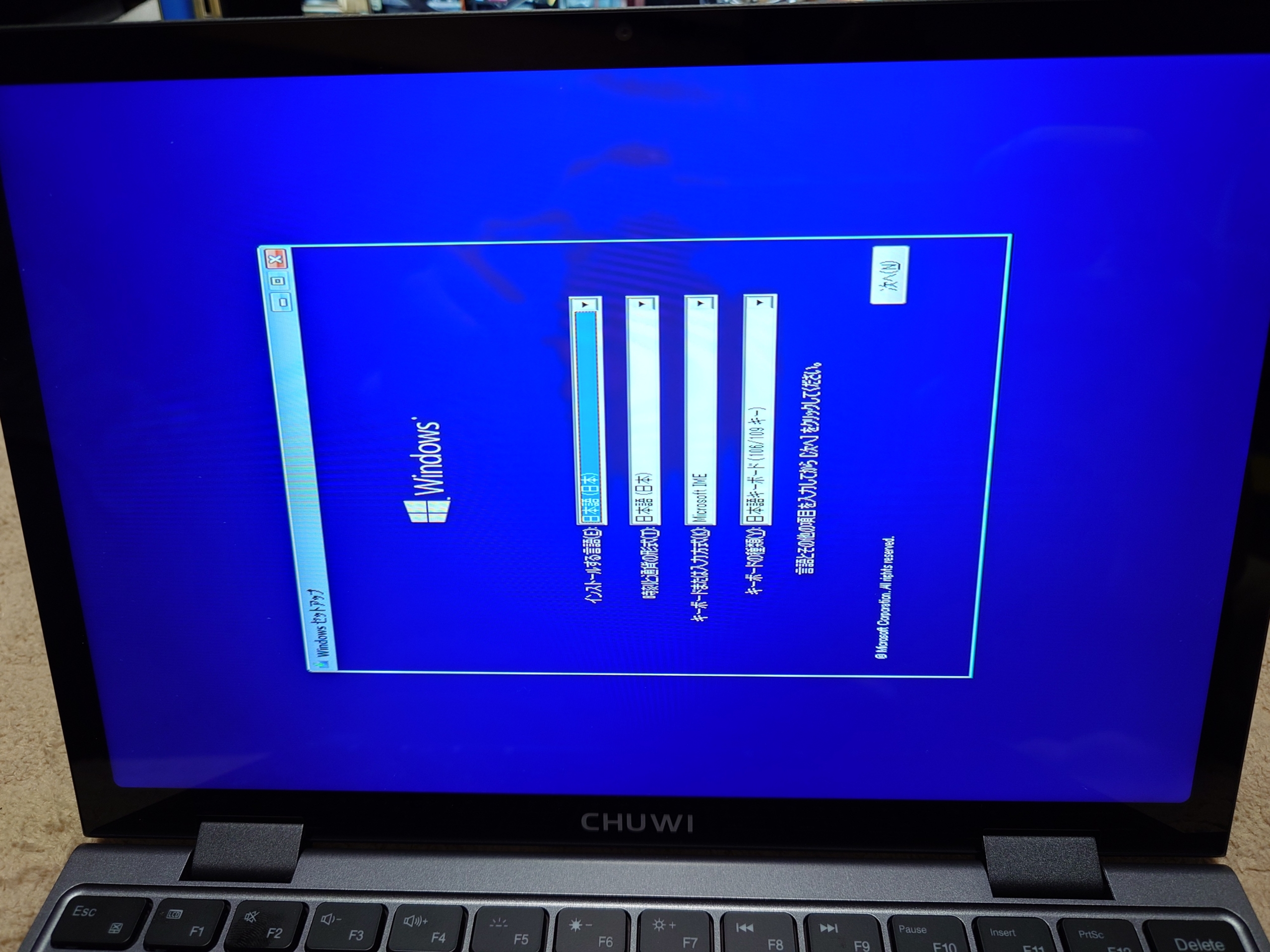 とりあえずインストールはできたんですがタッチパッドが反応せず、Wi-Fiが認識せずずっと画面が横向いたままという状態でした。