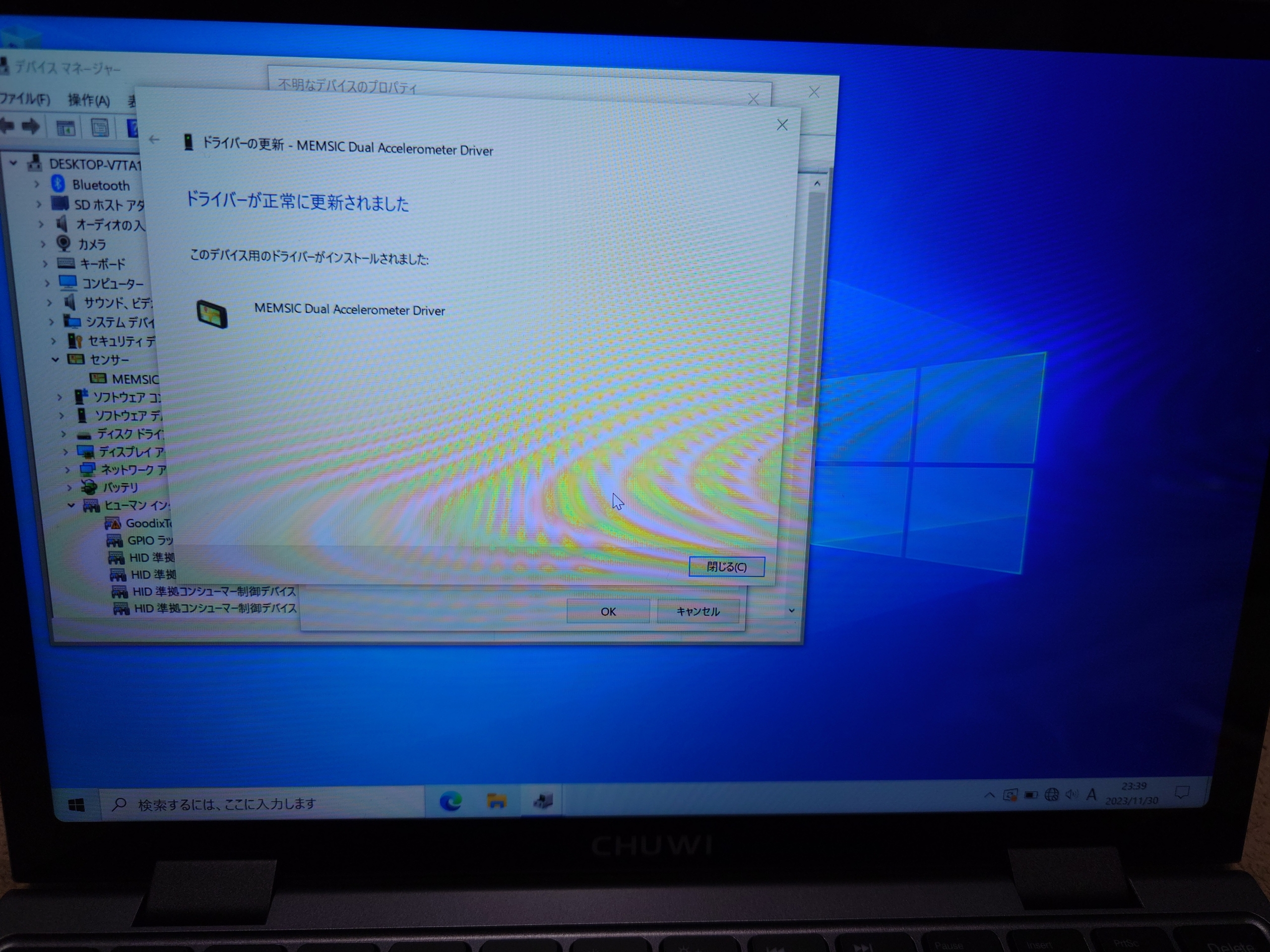 事前にドライバーを抽出していたのでデバイスマネージャーでドライバーを適用しまくっていたら2回再起動させられ気づいたらタッチパッドが反応するようになり、画面が回転して正常に表示されるようになりました。