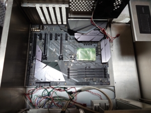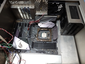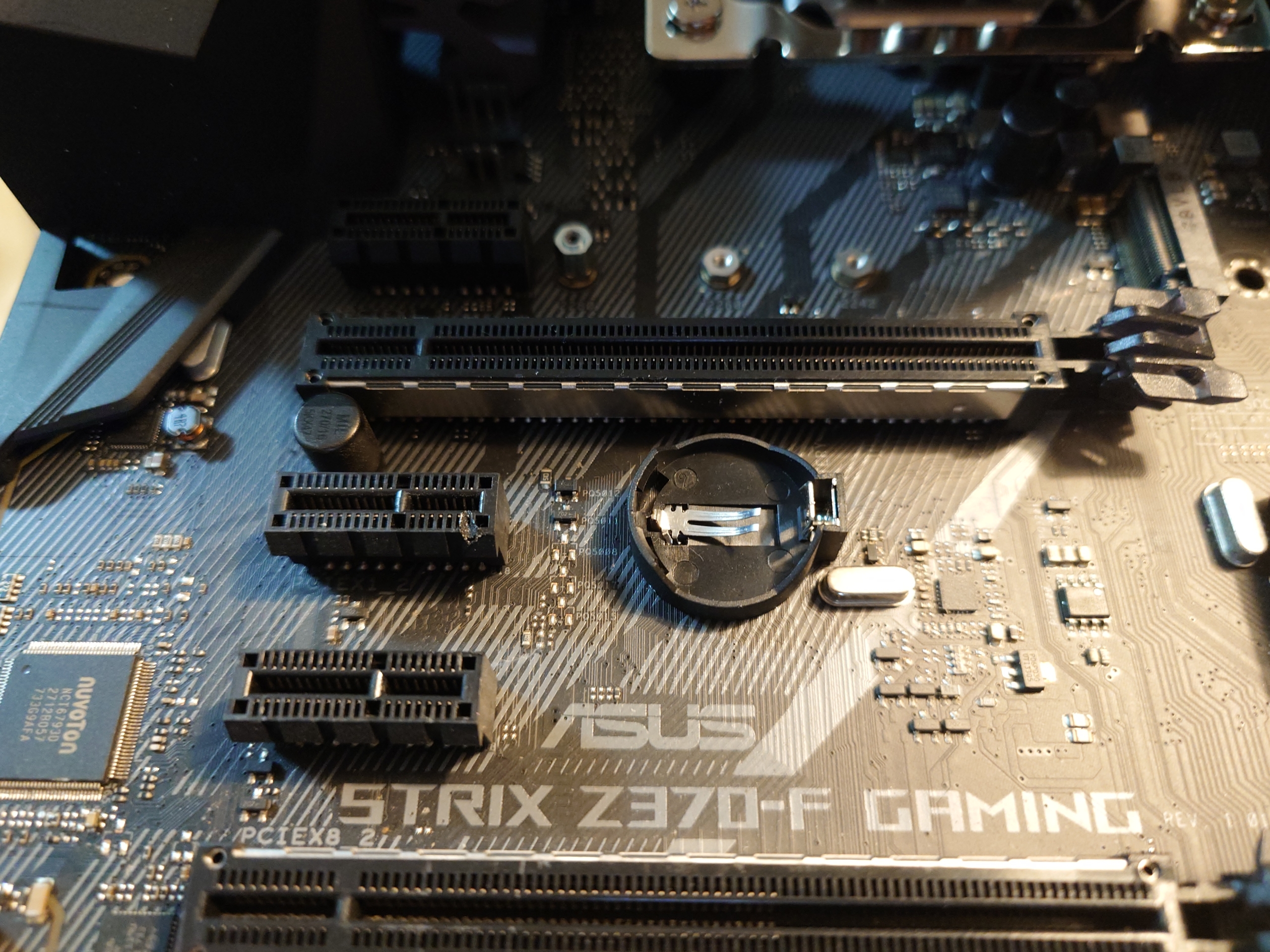 さて後日ですがマザーボードの電池ホルダーがないとUEFIの設定が保存できないのでアマゾンでホルダーを購入して半田ごてで無理やり装着しました。隣のスロットを溶かしてしまったのですがそもそもグラフィックボードで塞がれて使えないので問題ないです。