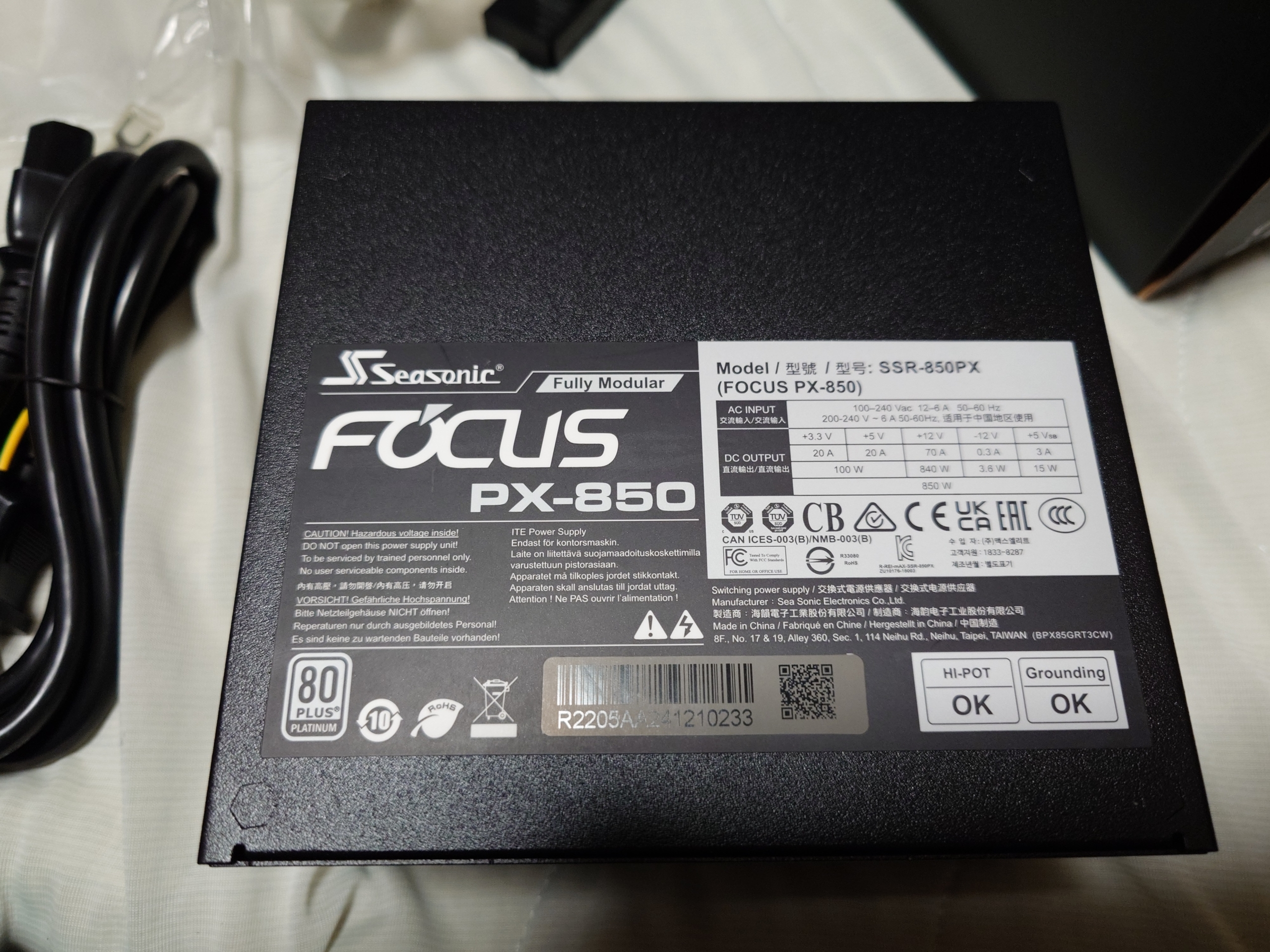 こちらが今回購入したパーツで一番高かったPC電源になります。80PLUSPlatinum記載がありますね、Seasonic製電源、一体どれぐらい持つんだろうか