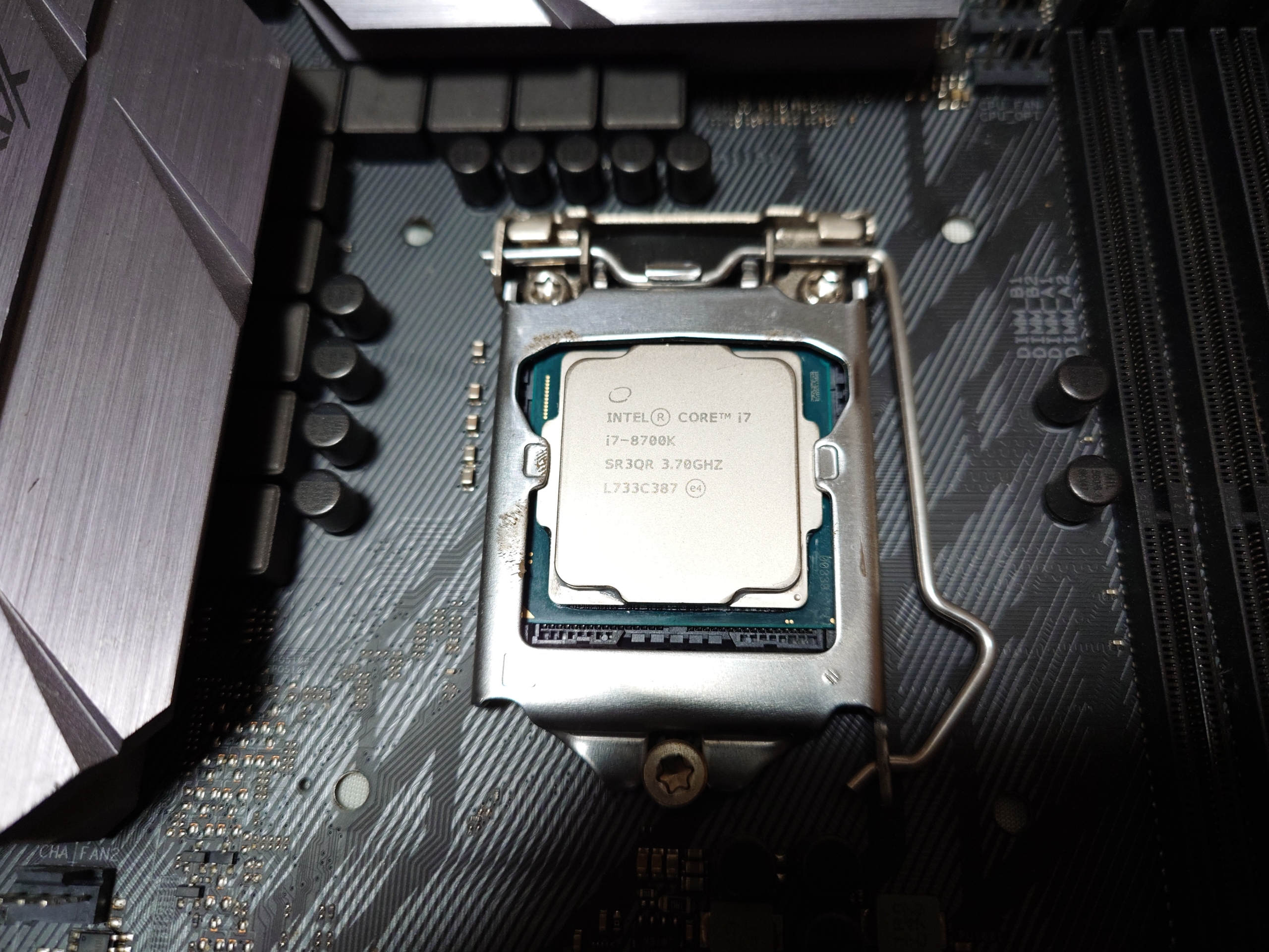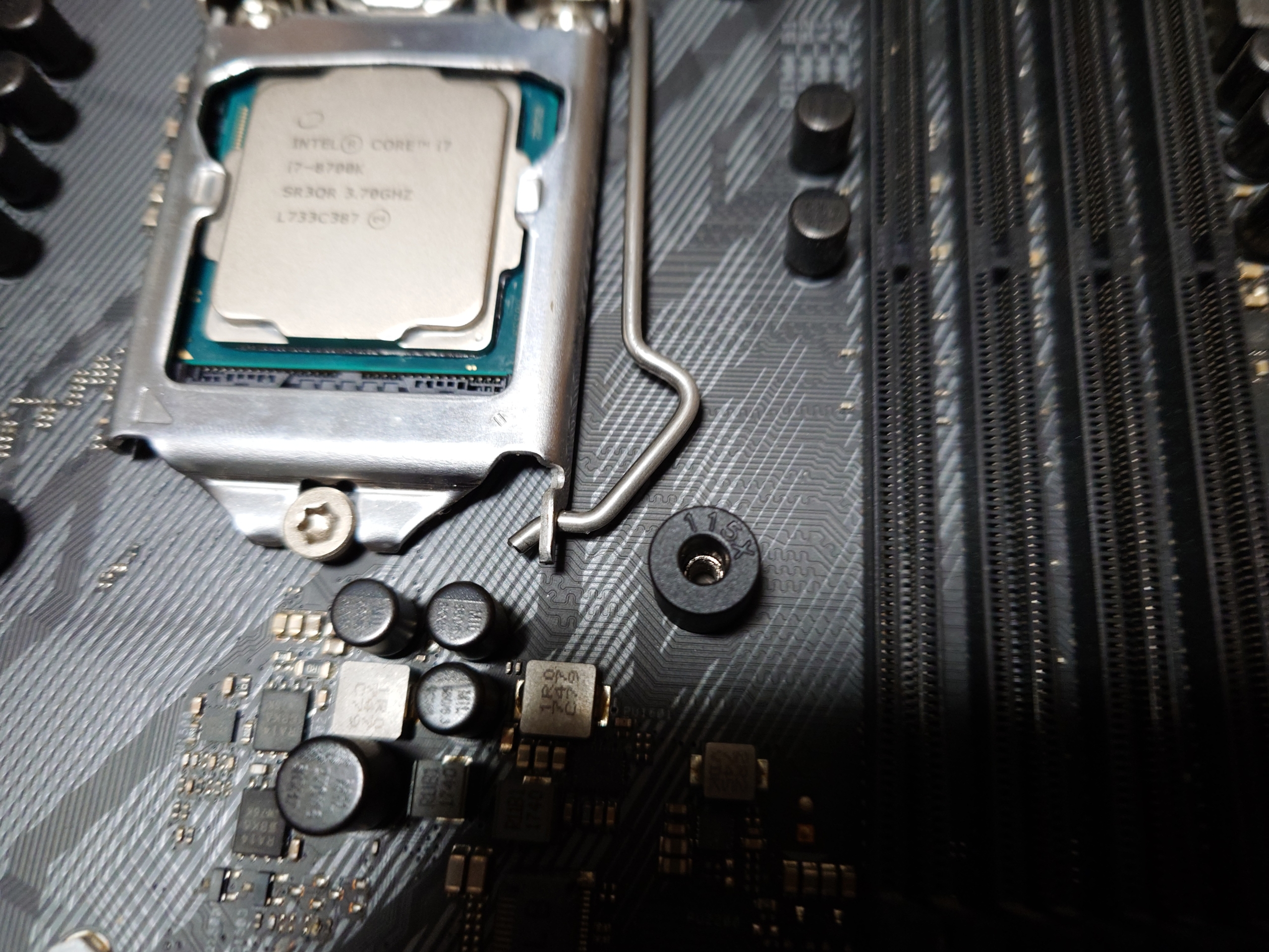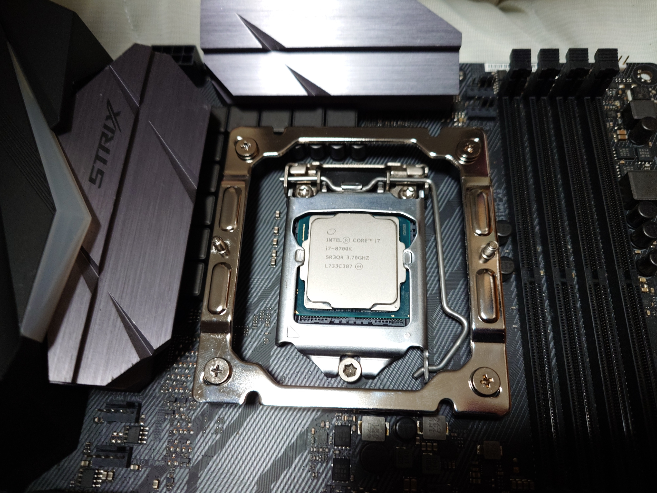 まずマザーボードを外して、CPUを装着しました。個人的にこの作業が一番恐怖でしたね…
