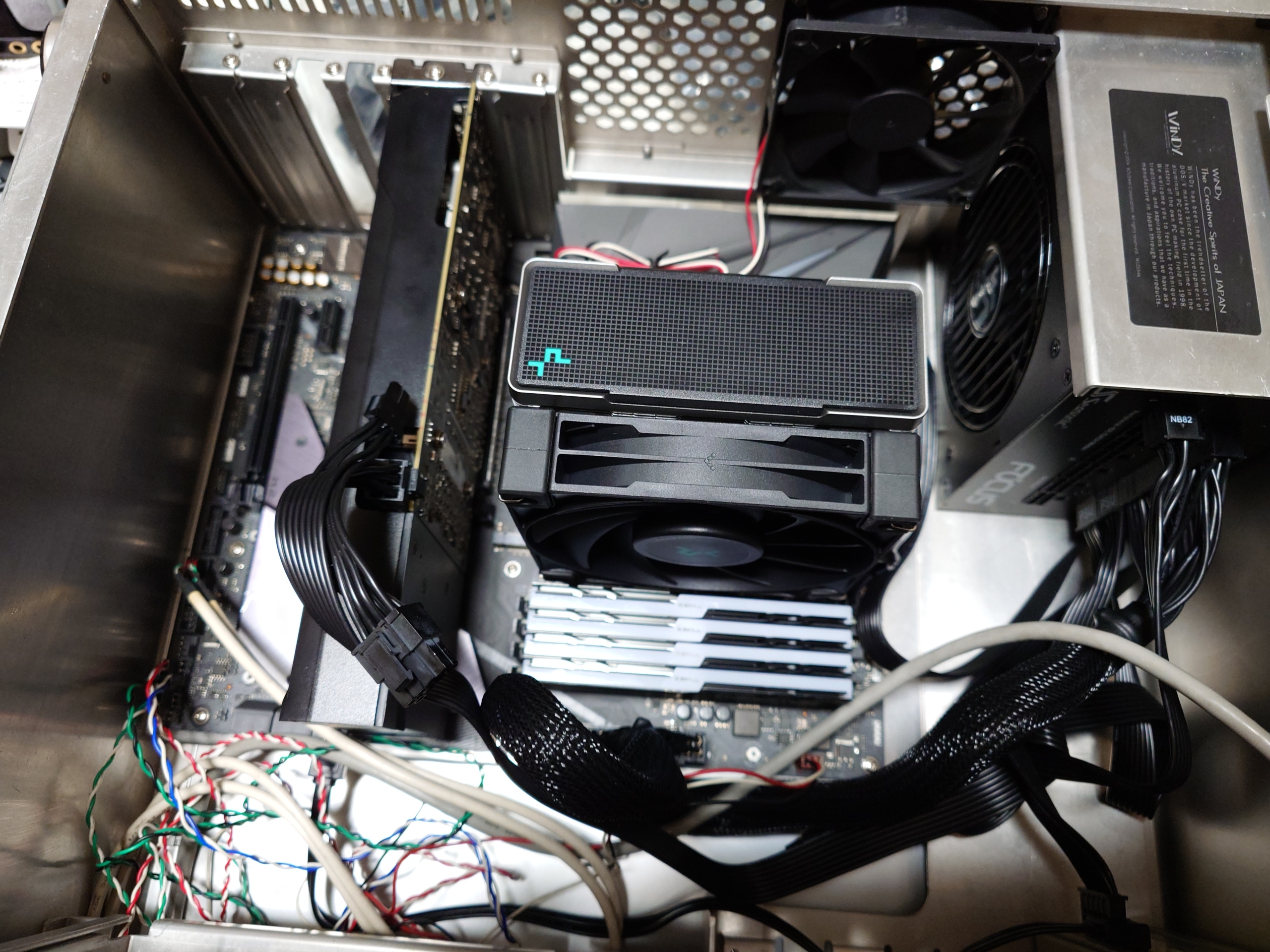 そしてCPUクーラーを装着しました。個人的にもう一つ嫌いなのがねじ込み式のCPUクーラーなのですが今回はねじ止め式のものを選定したので無事に組み立てできました。