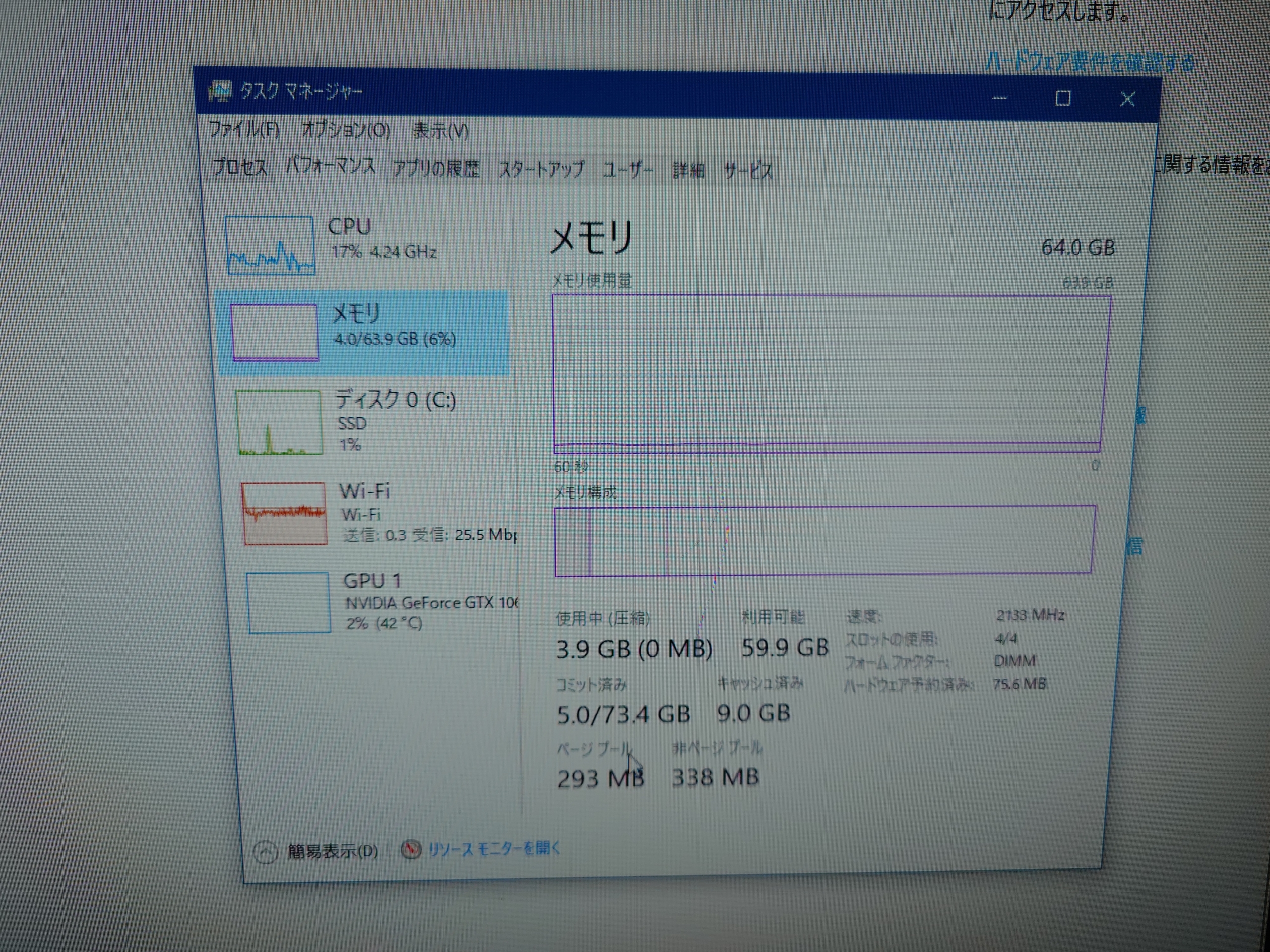 そしてRAMメモリーとSSDとグラフィックボードを装着しまして、早速動作確認をしました。