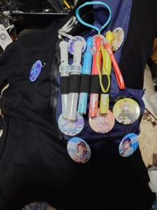 早緑:シンデレラガールズのスーパープロデュースTシャツってやつなんですよ〜(宇宙星人の缶バッチの下のシンデレラのマークを見せながら)