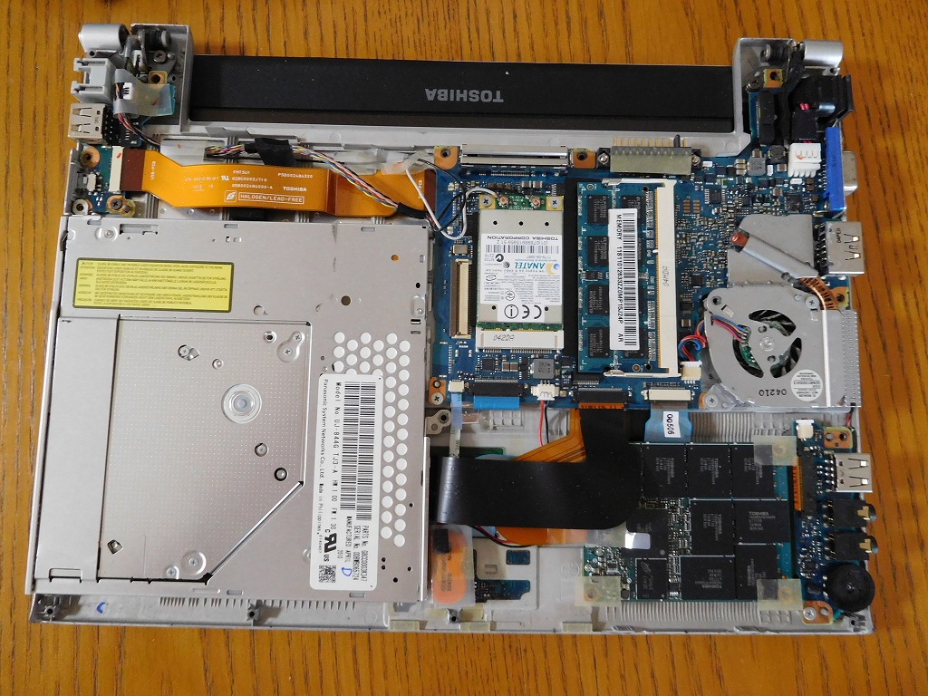 分解された状態です。これでSSDの変更やメンテナンスが可能です。