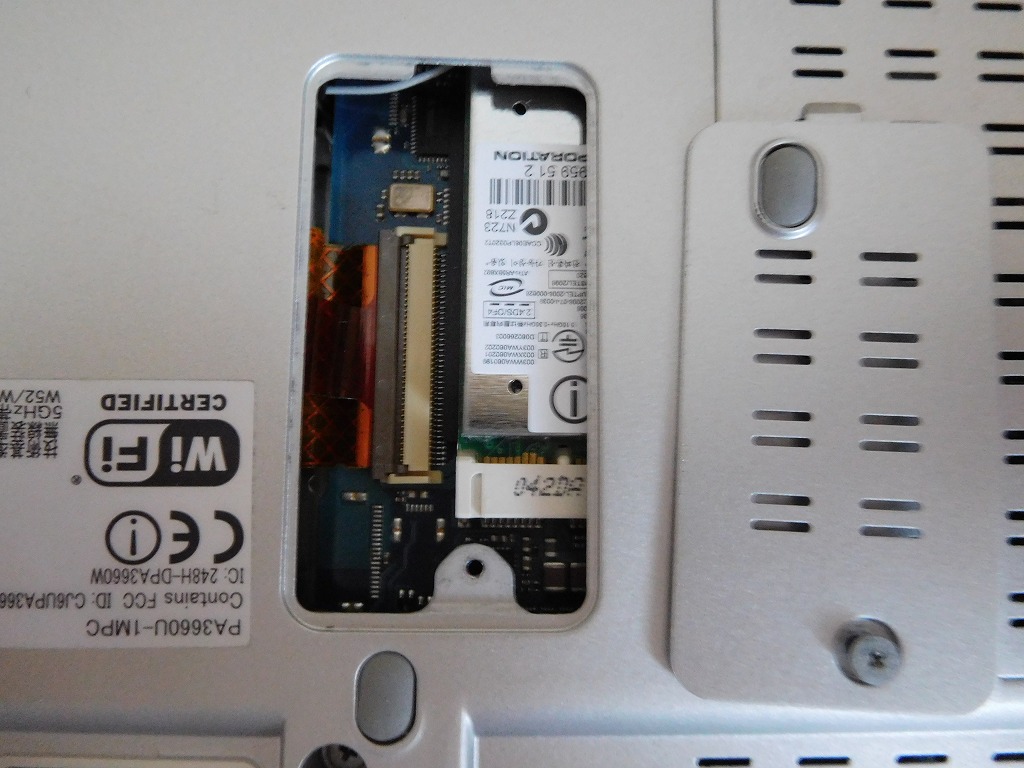 あともう一つ真ん中の細長い蓋を開けコネクタを外してください(上げるだけです。)ここを忘れても勝手に外れてくれることもありますが勢いよく開けてしまうとコネクターが破損してPCカードスロットが使用できなくなってしまうことがあるので必ずここのコネクターは外しましょう。